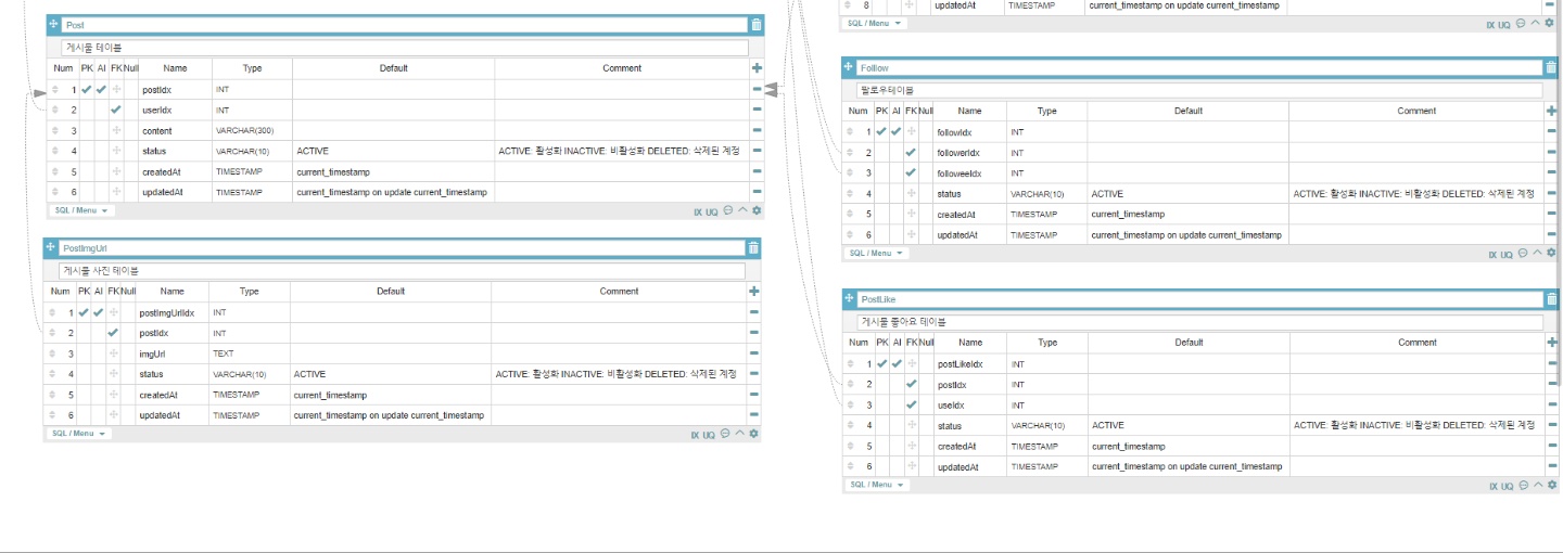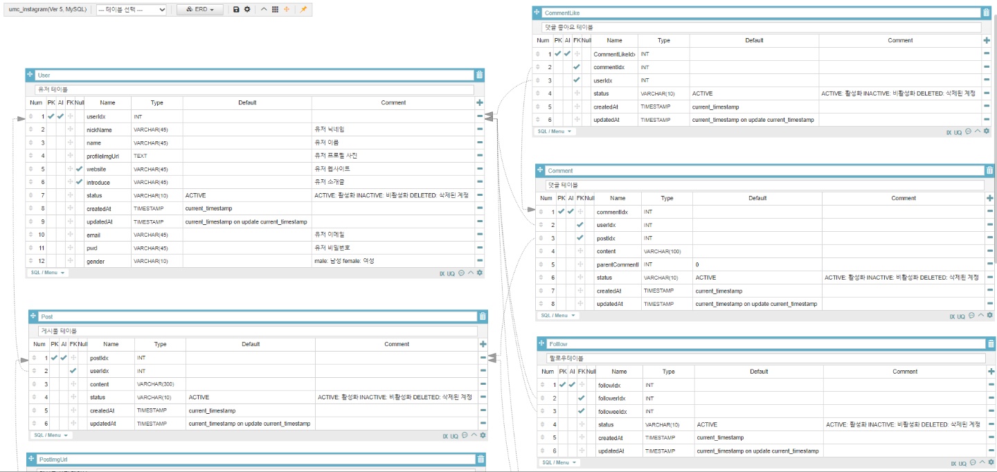 인스타그램 erd를 설계해보았는데 erd를 작성하면서 고쳐야하는 부분들이 자꾸 튀어나왔다.