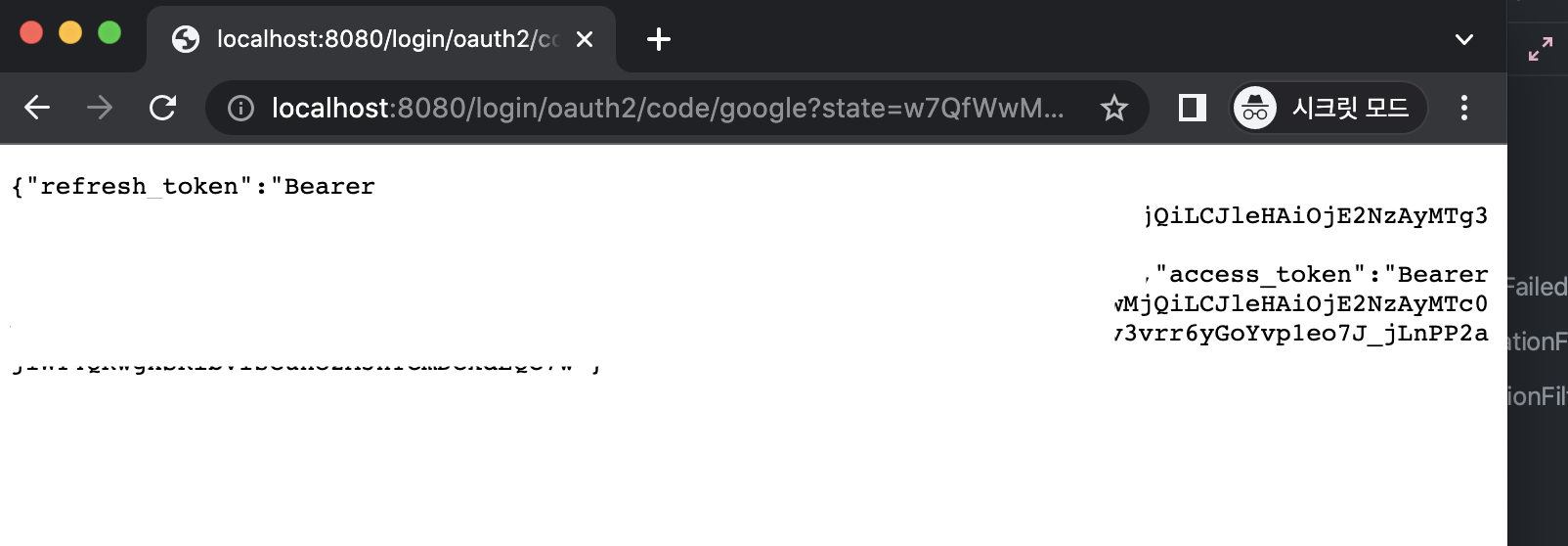 이어서 작성하자면 Oauth2로그인을 한 정보를 가지고 JWT 토큰을 만드는데 성공했다