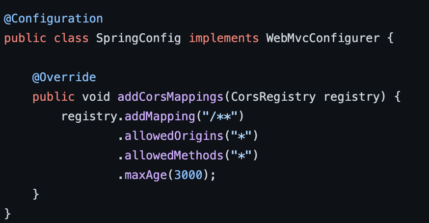 사실 본 프로젝트를 시작하기 전에 기본 기능만 닌자처럼 빠르게 구현해보고 부족한 점을 찾아서 본 프로젝트에서 보완하자는 의미의 '닌자 프로젝트' 를 진행하면서 cors 설정을 해두었기때문에 크게 걱정하지는 않았다